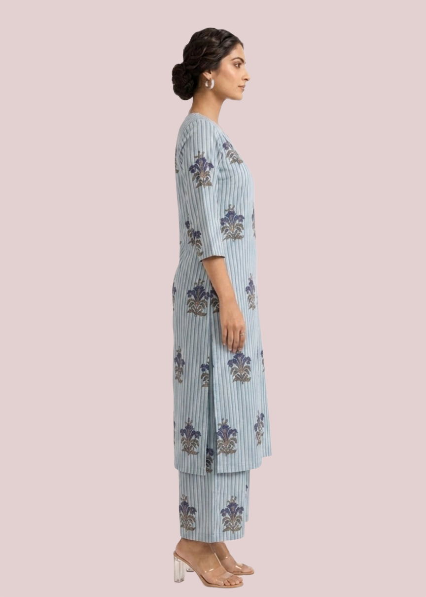 This Kurta is crafted from soft, breathable cotton for effortless comfort and timeless style. Designed in a loose, relaxed fit, this short tunic features elegant sleeves that add graceful movement and charm. The subtle print and soothing tone make it perfect for everyday wear or casual outings.