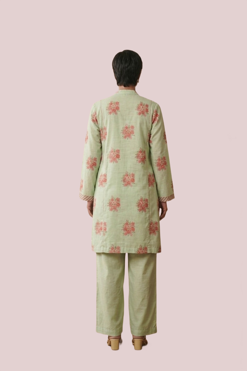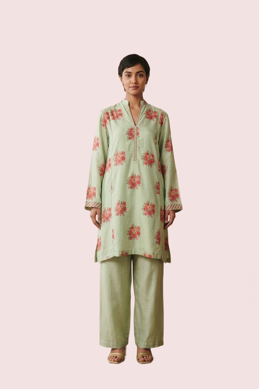 This Kurta is crafted from soft, breathable cotton for effortless comfort and timeless style. Designed in a loose, relaxed fit, this short tunic features elegant sleeves that add graceful movement and charm. The subtle print and soothing tone make it perfect for everyday wear or casual outings.