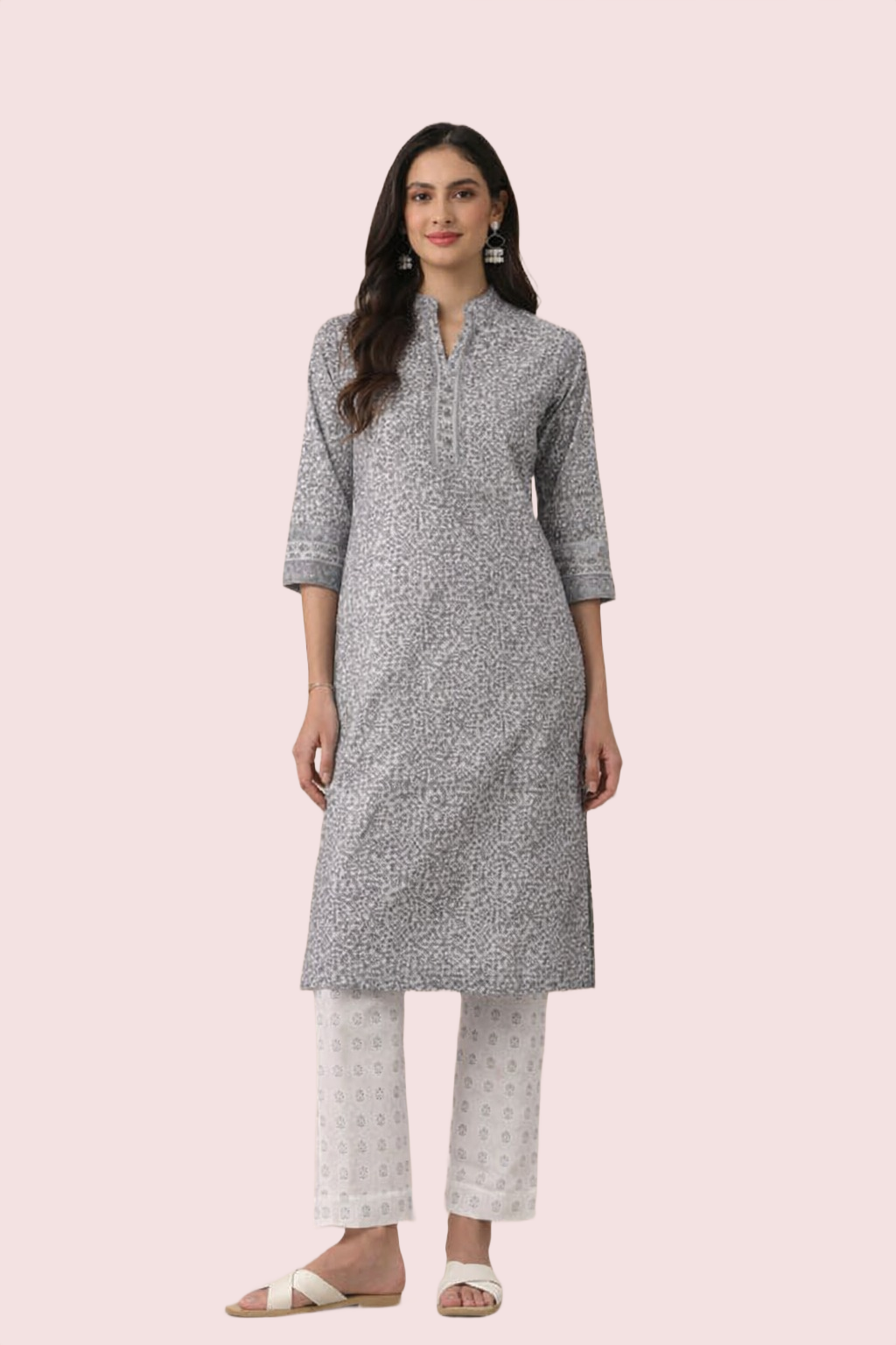 This Kurta is crafted from soft, breathable cotton for effortless comfort and timeless style. Designed in a loose, relaxed fit, this short tunic features elegant sleeves that add graceful movement and charm. The subtle print and soothing tone make it perfect for everyday wear or casual outings.