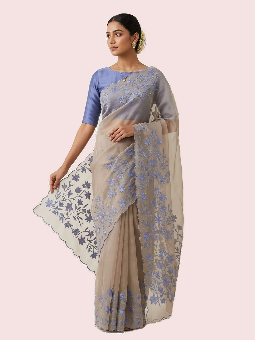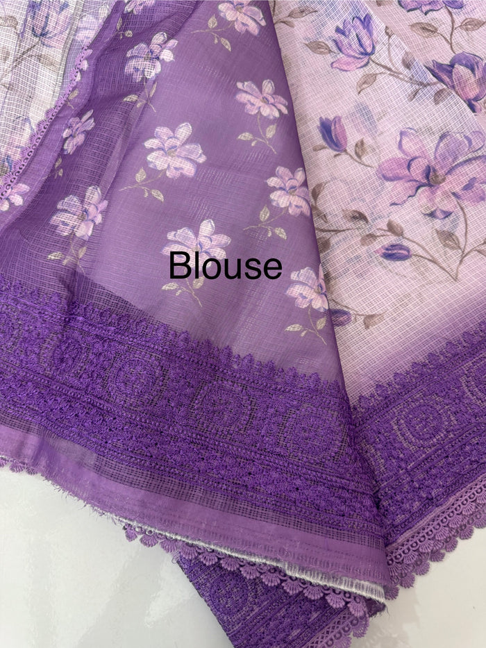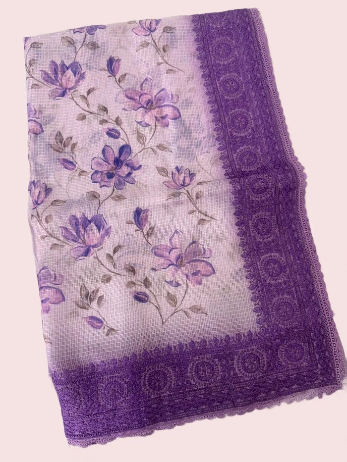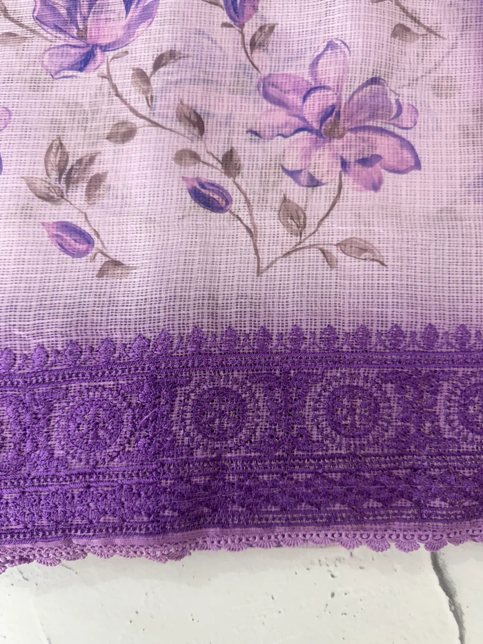 Embroided Kota Silk Saree with Chikankari Border (Violet)