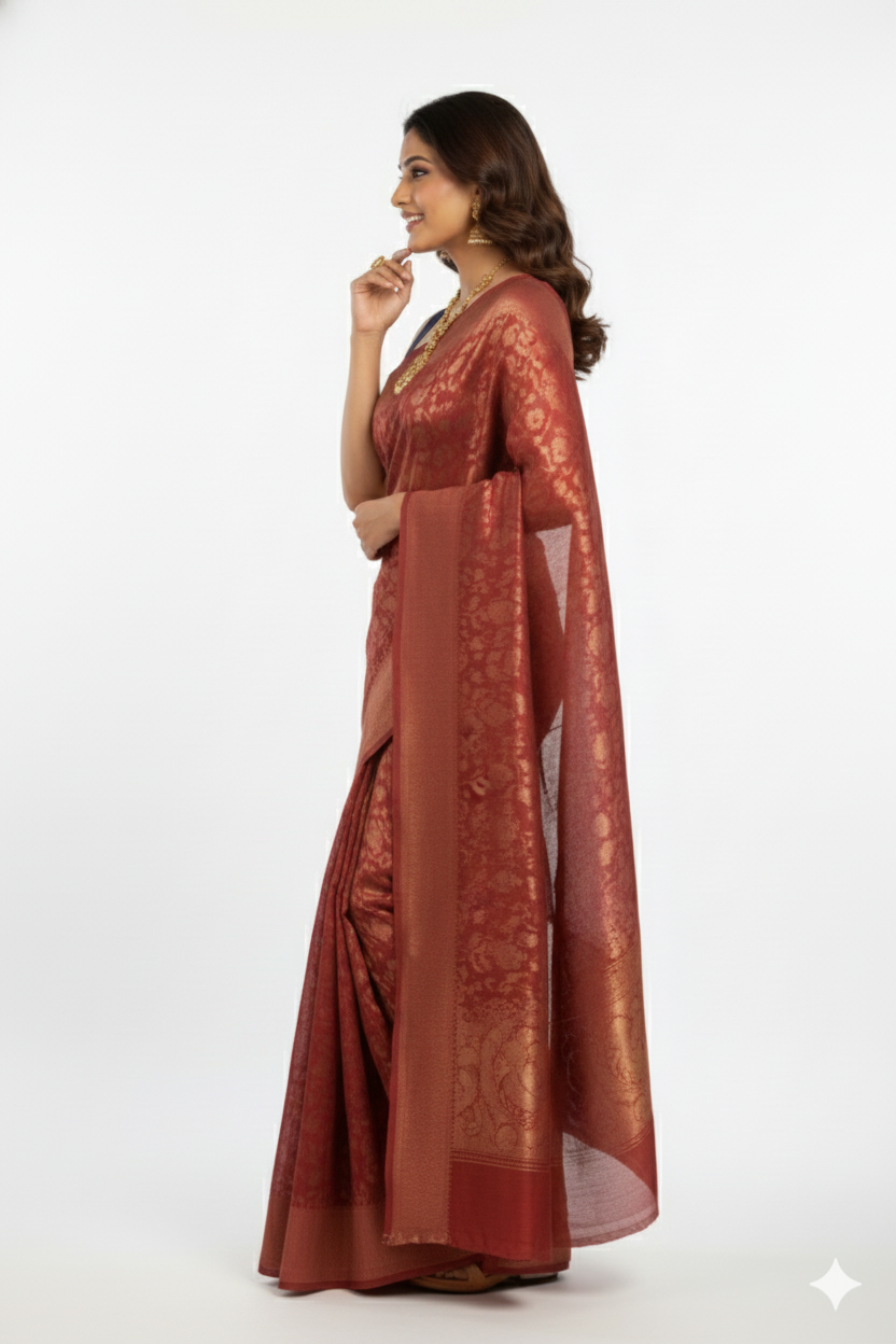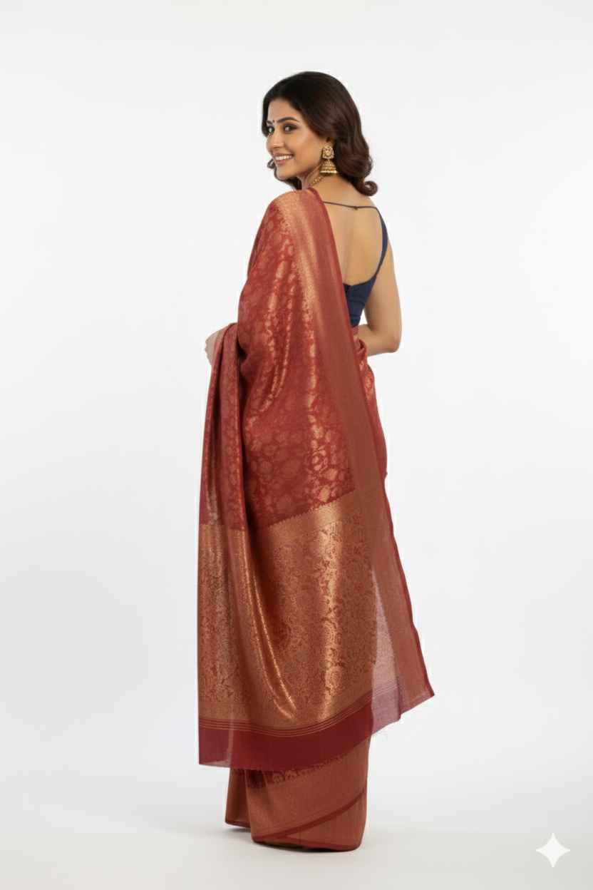 Red Silk Woven Party Saree